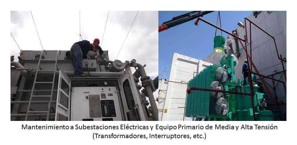 - Mantenimiento a Subestaciones Eléctricas y Equipo Primario de Media y Alta Tensión (transformadores, interruptores, etc).
