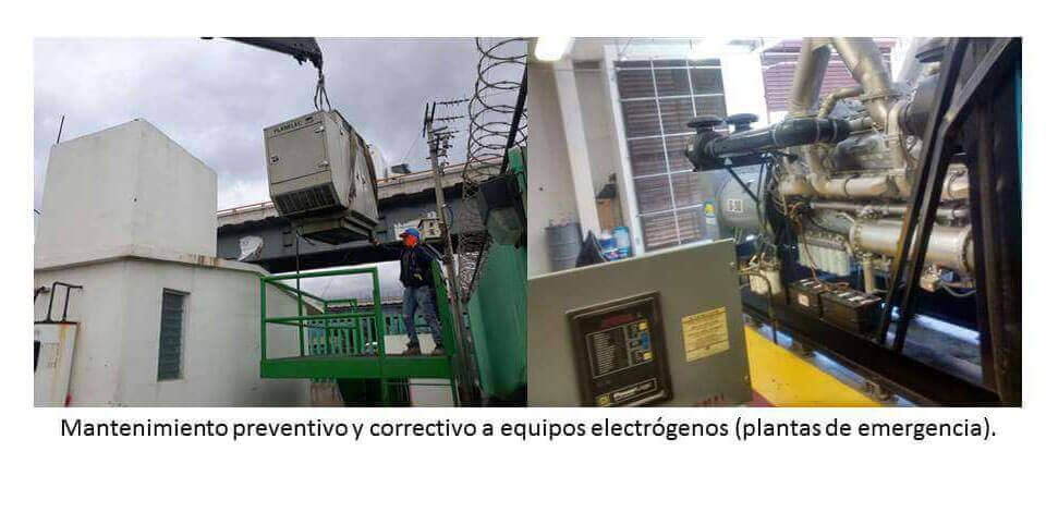 - Mantenimiento preventivo y correctivo a equipos electrógenos (plantas de emergencia).