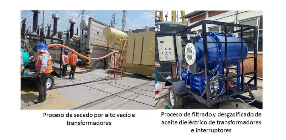 - Proceso de filtrado y desgasificado de aceite dieléctrico de transformadores e interruptores.